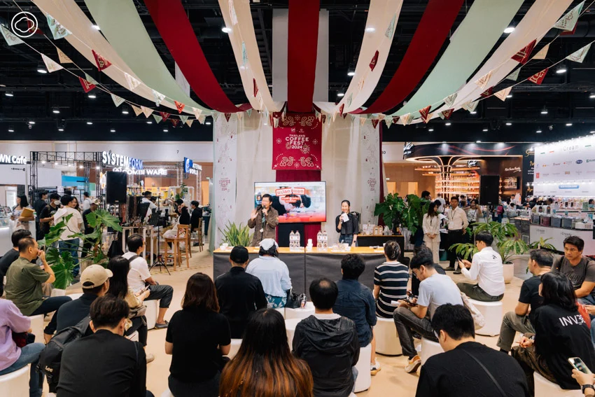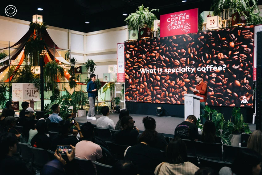 เวทีเสวนากลางงาน มีทั้งเรื่องอินไซต์ในวงการกาแฟและธุรกิจคาเฟ่ เช่น ชา ช็อกโกแลต มัทฉะ เทรนด์โลกอย่างเรื่องสุขภาพ นวัตกรรม สินค้า และธุรกิจอื่น ๆ ที่มาจับมือกันมานำเสนอเรื่องน่ารู้